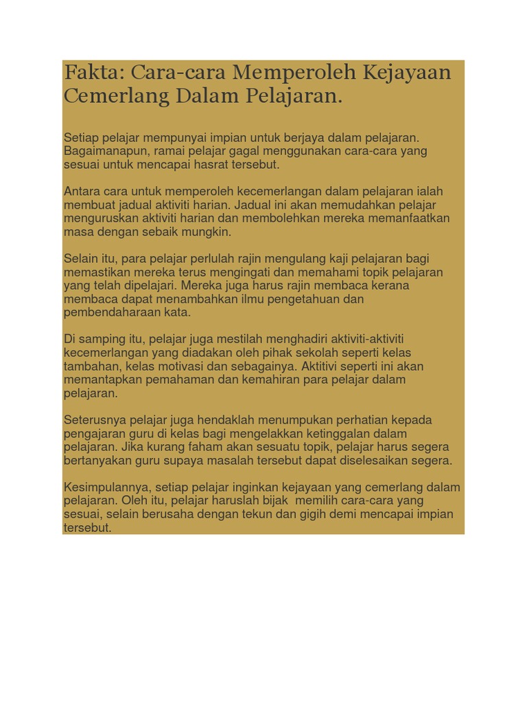 Cara Memperoleh Kajayaan Cemerlang Dalam Pelajaran Pdf